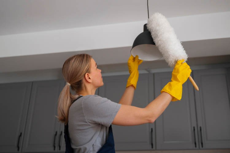 Light fixtures and ceiling fans can release dust into the air.